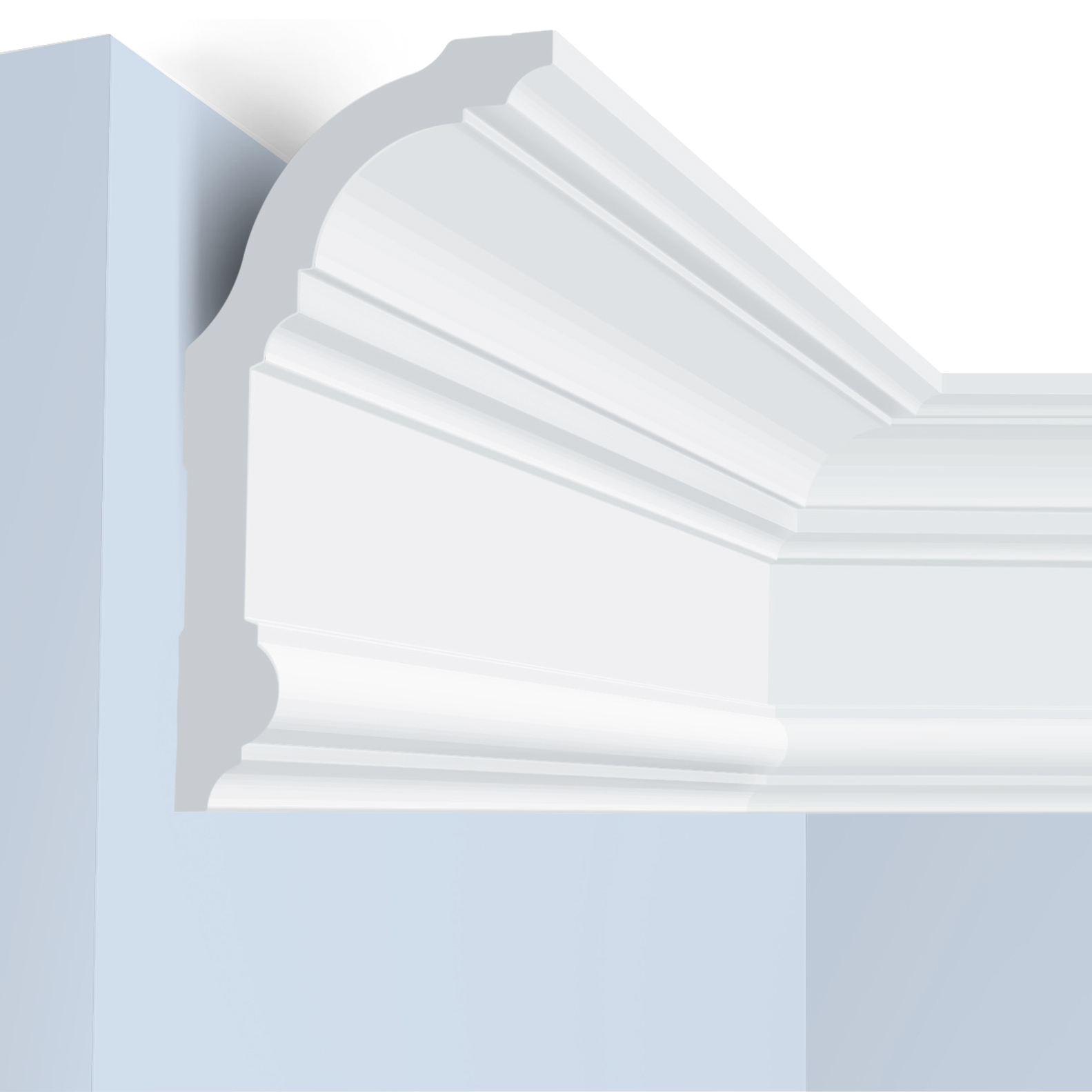 Массивный потолочный карниз премиум-класса из инновационного фитополимера. Благодаря внушительным размерам и современным формам идеально подходит для оформления просторных помещений.
